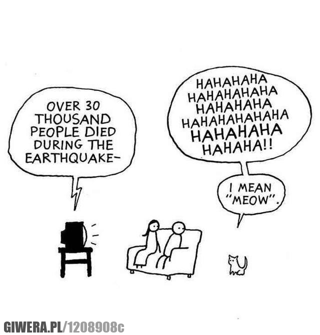 trzęsienie ziemi,meow,śmiech