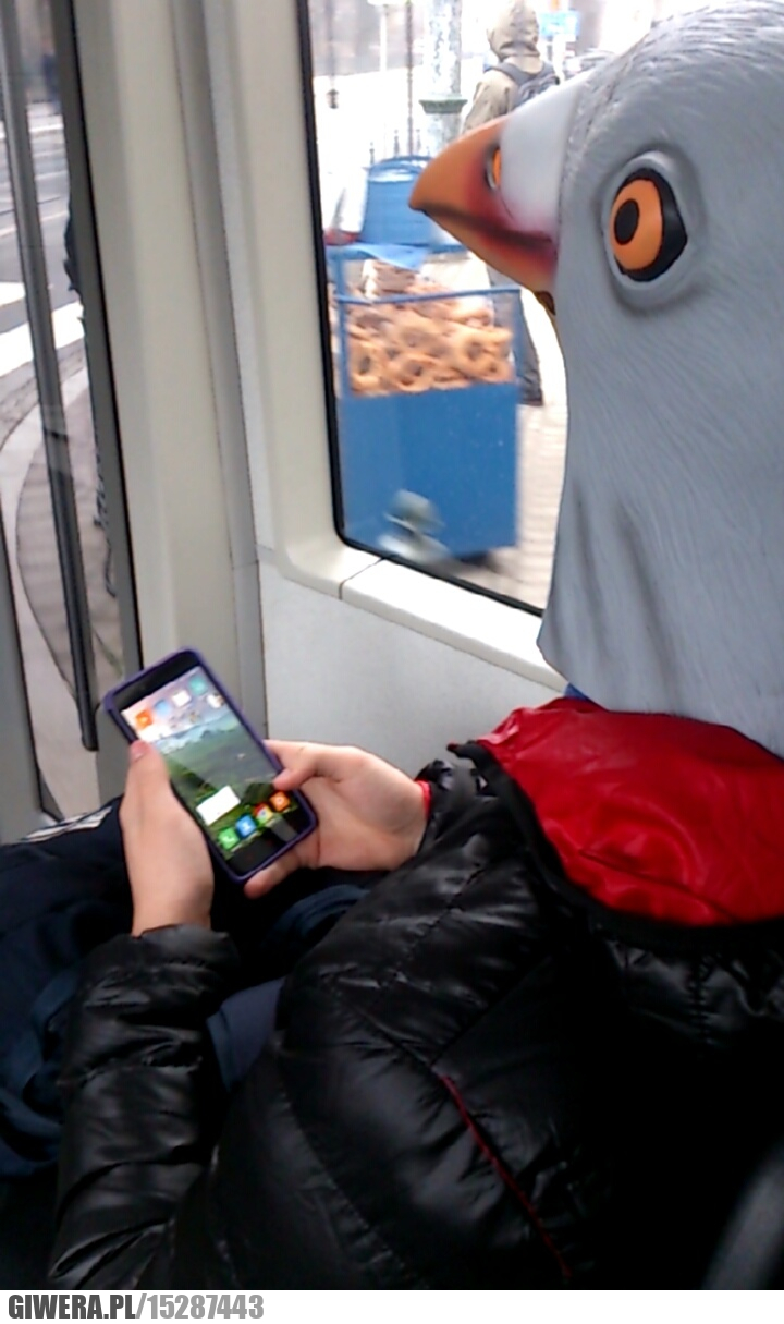 Kraków,gołąb,przebranie,tramwaj