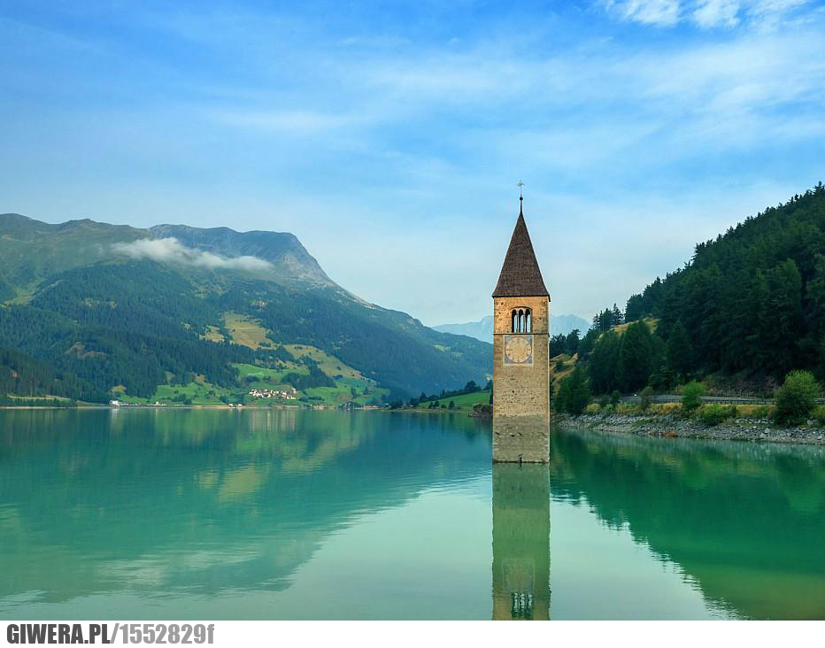 Wieża,jezioro,Reschensee,Włochy