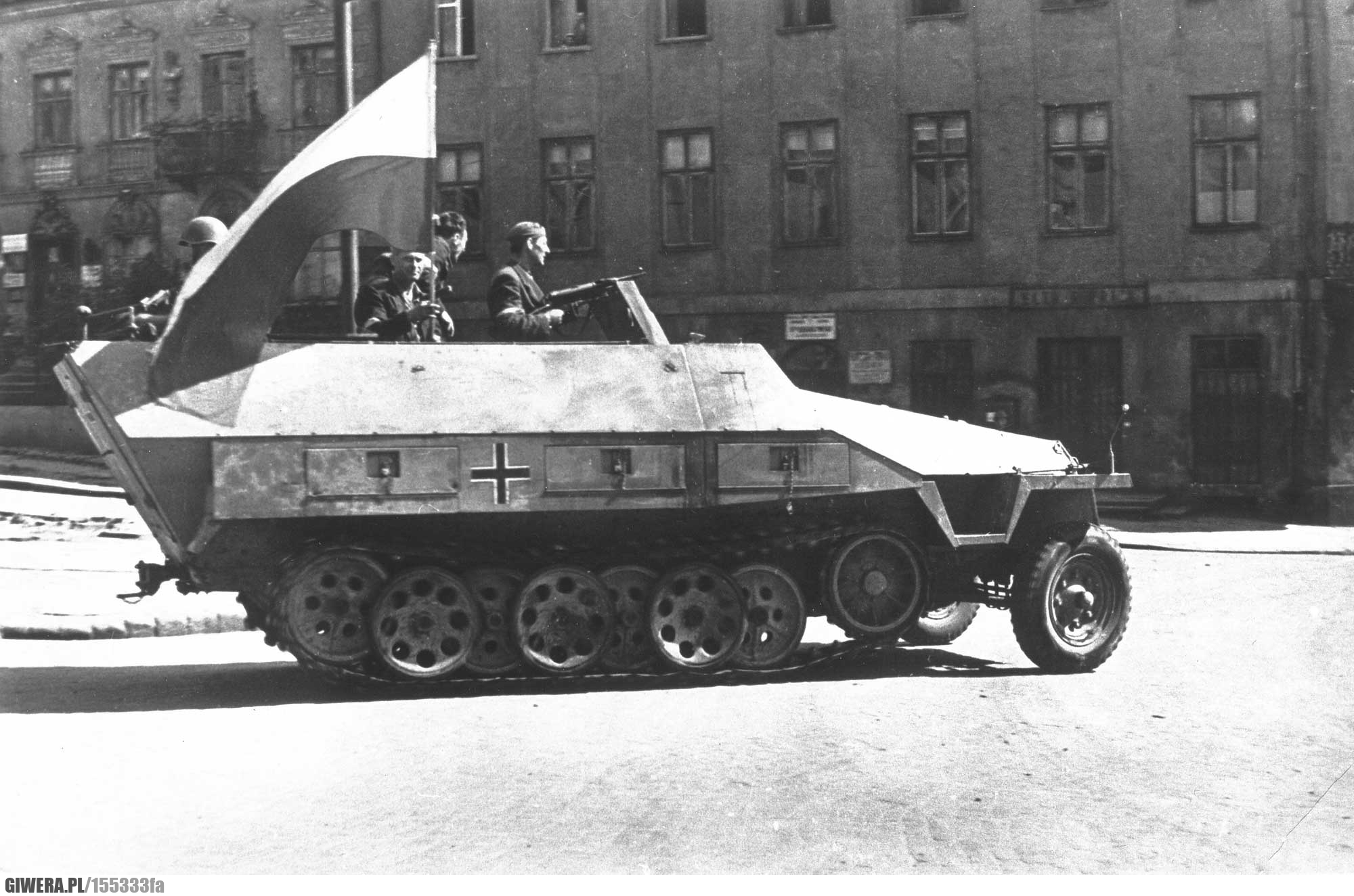 Warszawa, Niemcy, Polska, Polak, flaga, wóz, opancerzony, Powstańcy, historia, archiwum, dzieje, Pol