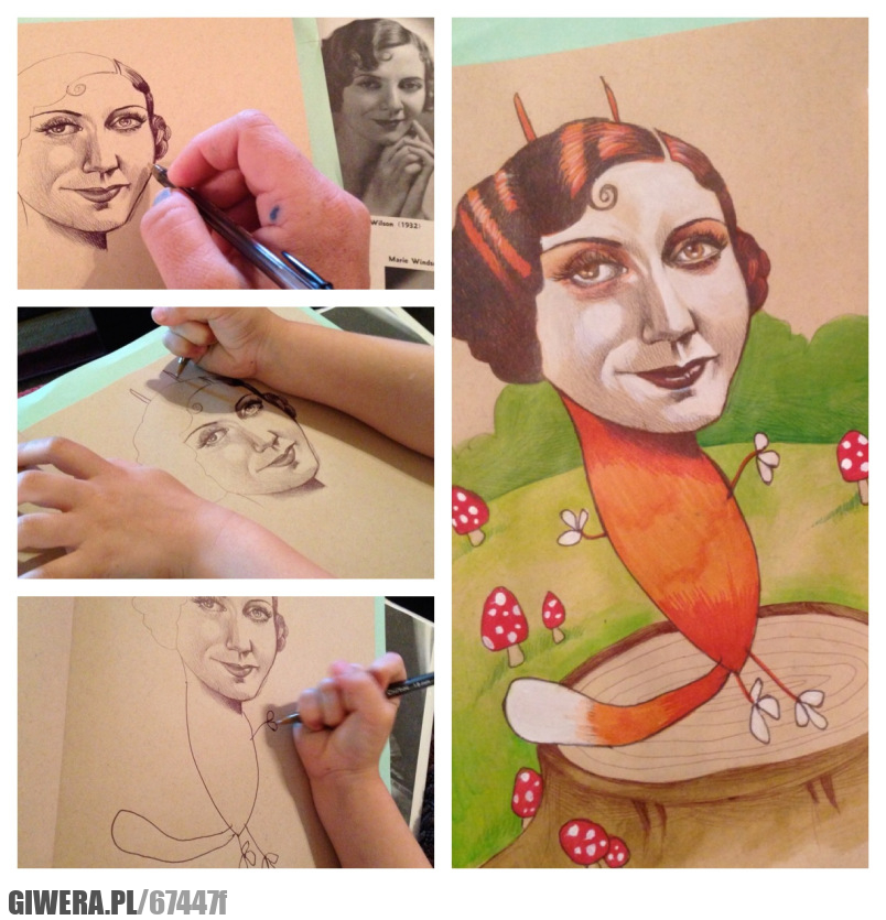 ona dorysowuje koślawe nogi które matka koloruje...