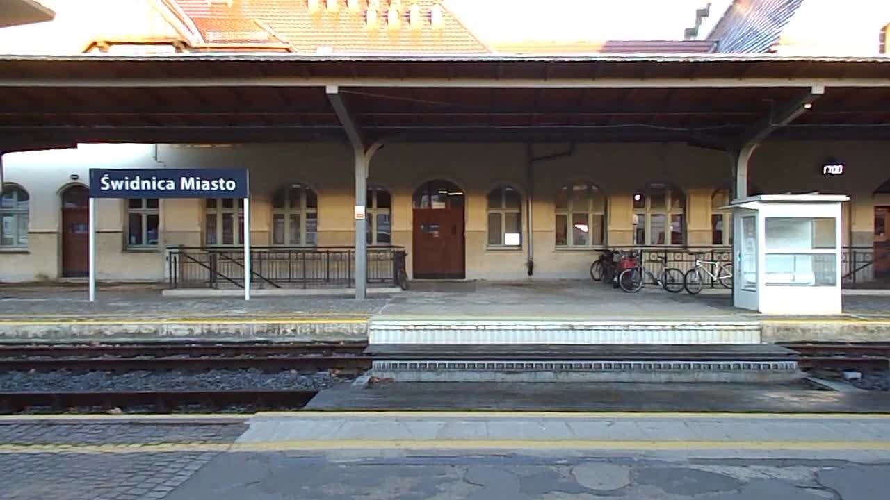 24.10.2022 - Świdnica Miasto - zapowiedź pociągu Koleje Dolnośląskie relacji Wrocław Główny - Bielawa Zachodnia i wjazd pociągu na peron.