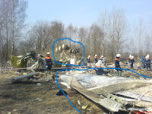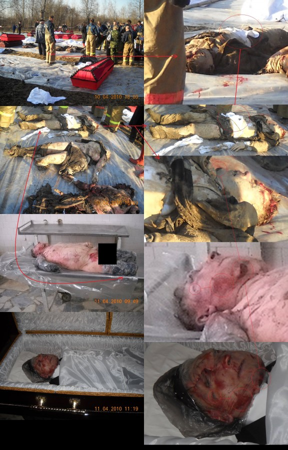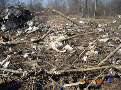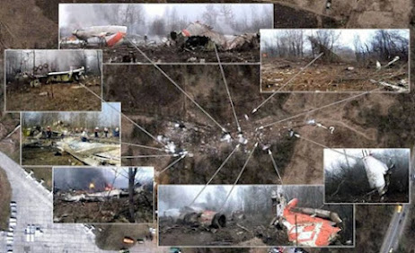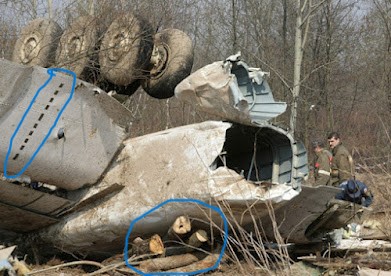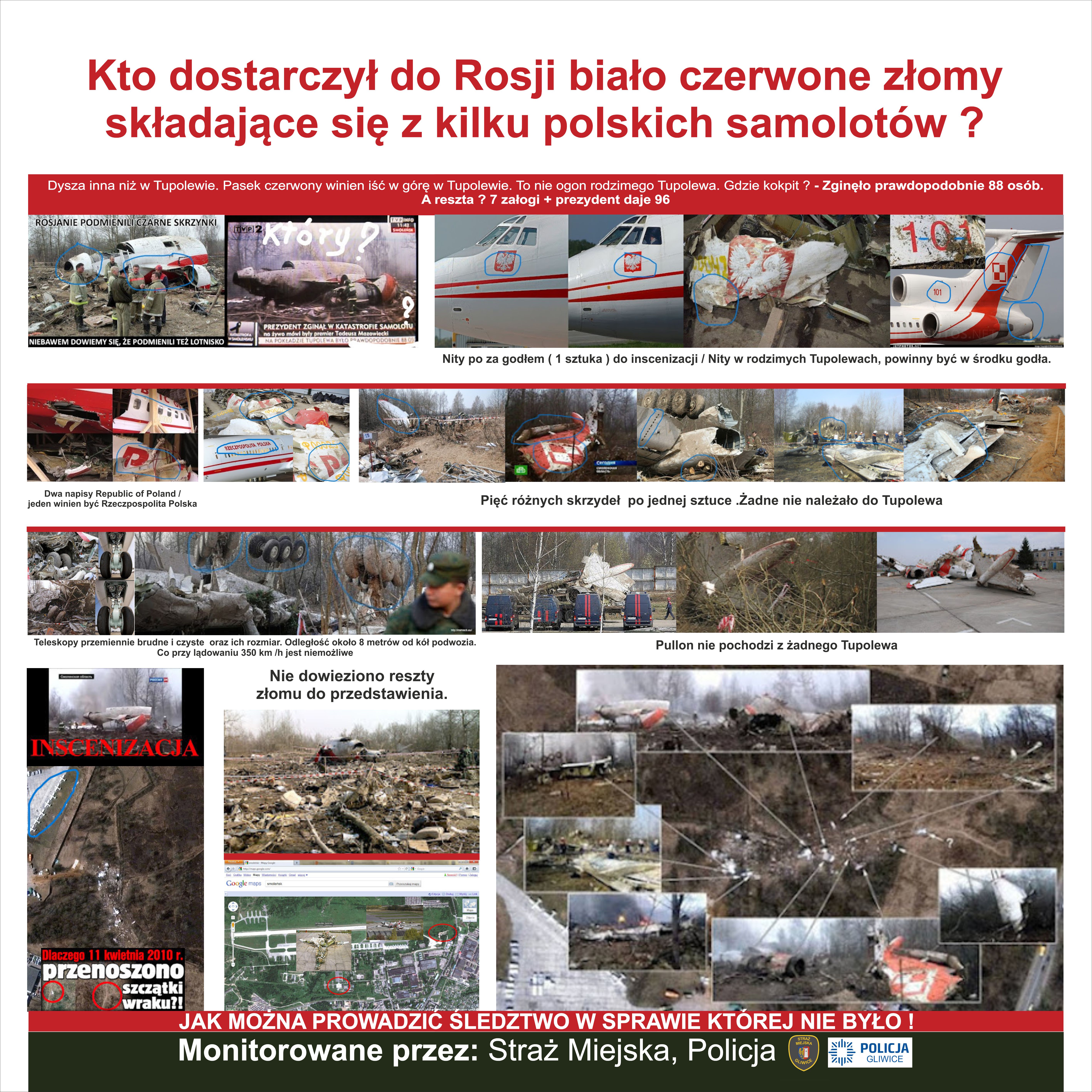 A TERAZ FAKTY Z FILMU POWYŻEJ : Biało czerwony złom nie pochodził w 100 % z rodzimego Tupolewa .Pierwsze małe pokazywane skrzydło ma cztery małe lotki . To skrzydło z polskiego co prawda samolotu lecz nie Tupolewa. Drugie skrzydło również nie pochodzi z Tupolewa . Widzisz strażaków lejących daleko od złomu . Leją na ziemię . Gdzie zatem reszta pokazywanych potem ujęć i pozostałego złomu. Gdzie trupy , teleskopy , napisy Rzeczypospolita Polska ,gdzie jest kokpit . etc